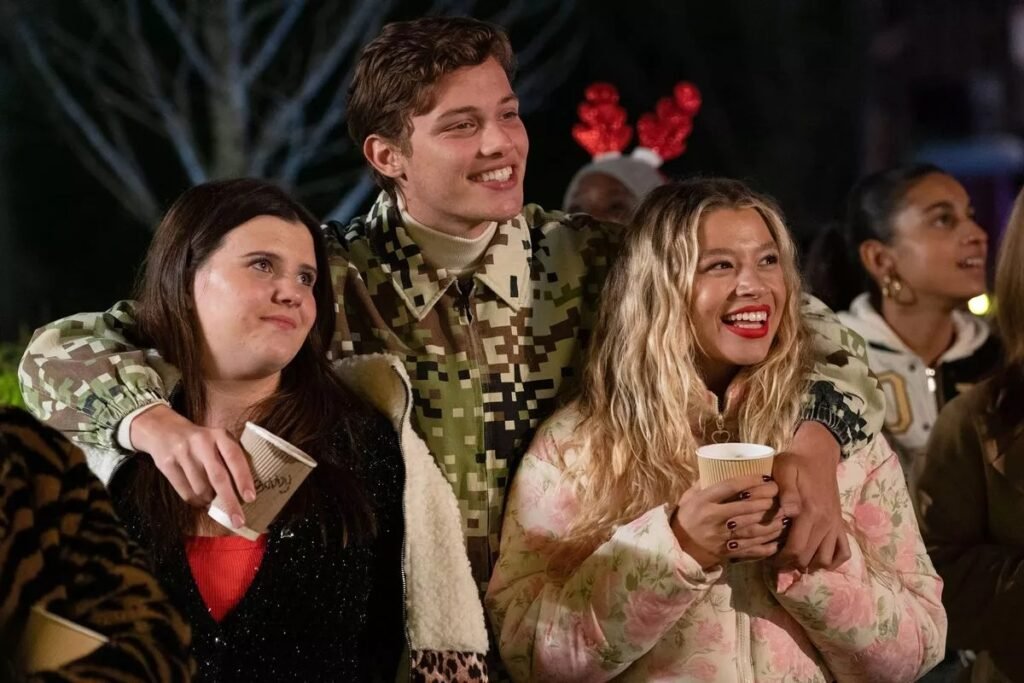 Elaine Peacock (Harriet Thorpe) gives a heartfelt speech about Freddie and Anna, but the festive mood is shattered when a troubling message appears in The Vic’s window as the Square’s Christmas lights are switched on.
