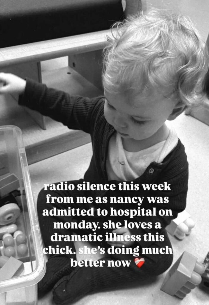 Writing on Instagram, she said: “Radio silence this week from me as Nancy was admitted to hospital on Monday. She loves a dramatic illness this chick!”