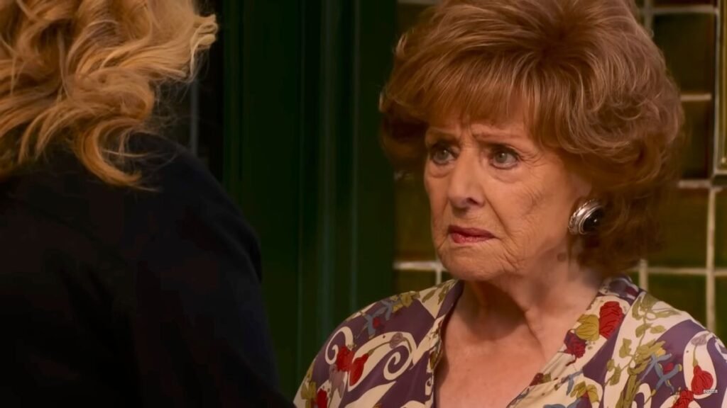 Rita responds: “Don’t say that, Jenny, don’t say that. I’ll be alright.” Jenny then walks out of the pub, throws her old Rovers Return Inn licensee plate into the bin, and leaves the cobbles behind.
