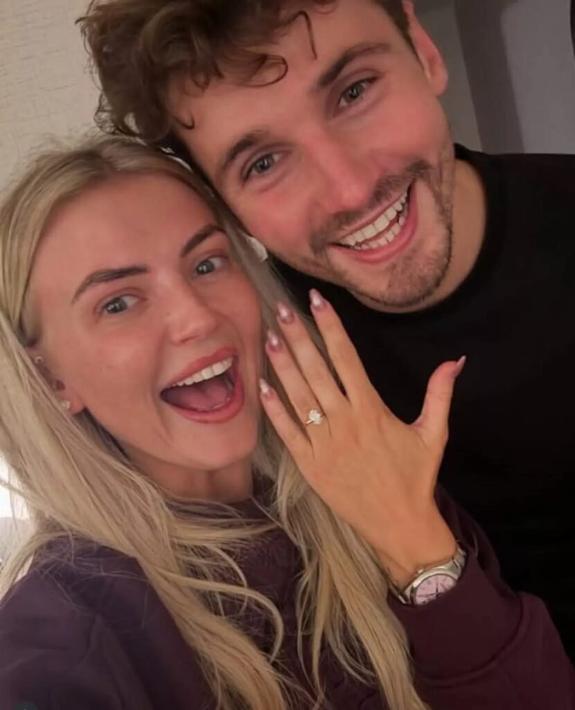The first snapshot featured the couple in a tender selfie, with Lucy’s hand held up to the camera. The soon-to-be bride appeared deeply moved, tears welling in her eyes.
