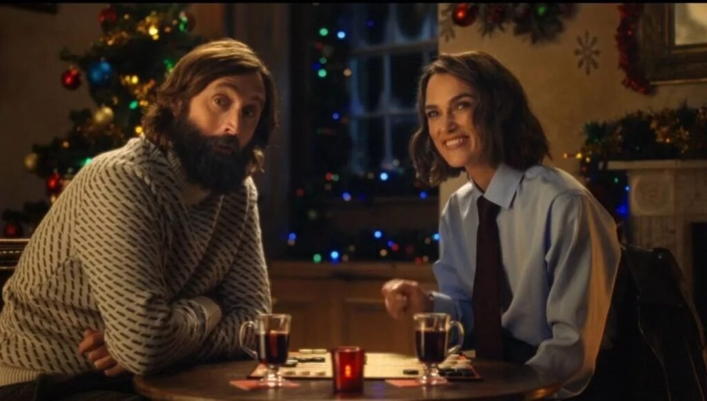 The commercial begins with the two meeting at a Waitrose cheese counter and builds to a climax when Joe, reprising his role as Phil from the grocer’s 2024 festive “whodunnit” campaign, recreates Keira’s Nan’s turkey pie recipe.