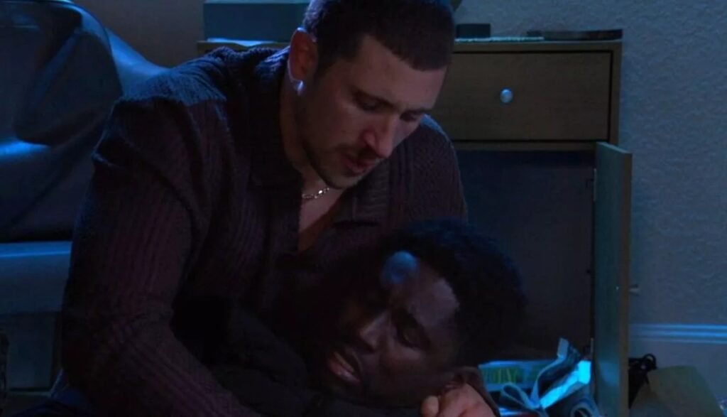 Dedicated fans of the BBC soap will remember that Okie (Aayan Ibikunle Shoderu) had taken Harry Mitchell (Elijah Holloway) hostage after Harry threatened to expose Ravi Gulati’s (Aaron Thiara) illegal drug operations.