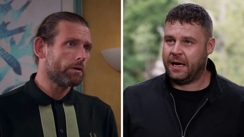 Robert and Aaron attempted to keep their renewed relationship a secret, but in classic soap fashion, Kev eventually uncovered the truth. In Thursday’s episode, Kev sought revenge, holding the pair hostage with a sword — and an unsuspecting Liam Cavanagh was dragged into the chaos as well.