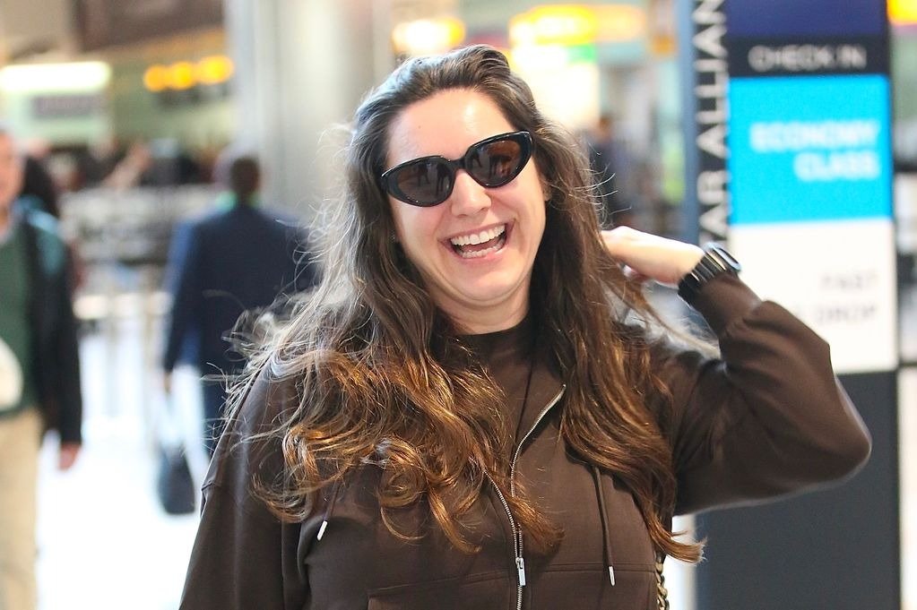 The 45-year-old TV personality, who recently competed on Celebrity Race Across The World, was photographed checking in her vintage luggage and smiling warmly for cameras, going makeup-free as she navigated the airport.